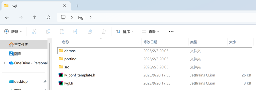 demos文件夹不是必须的,它存放着lvgl官方的一些示例,我们保留下来方便快速验证。