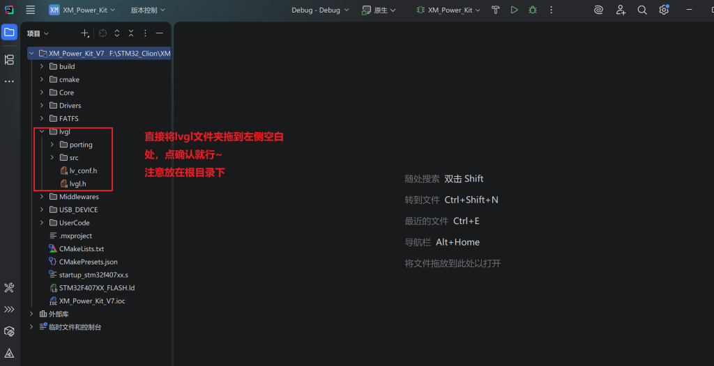 既然你都来学习lvgl的移植了,那么我就默认你已经通过STM32创建好了工程,并且可以通过CLion打开~